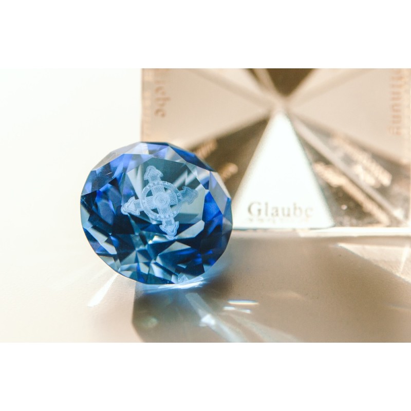Dieser runde, blaue Kristall ist 30 mm groß und wird in einem kleinen Beutel geliefert – so kann man ihn immer bei sich tragen.
